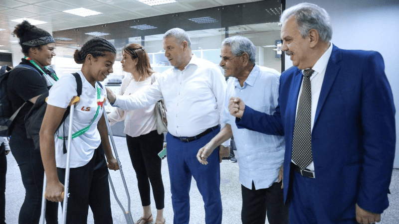 استقبل وزير الشباب والرياضة، الصادق المورالي، مساء الإثنين، بمطار تونس قرطاج الدولي، بعثة المنتخب الوطني التونسي لألعاب القوى العائدة من نيجيريا، بعد مشاركتها في البطولة الإفريقية للشباب تحت 18 و20 عامًا، التي أقيمت في مدينة أبيوكوتا بين 16 و20 يوليو 2025. وحضر مراسم الاستقبال المديرة العامة للمركز الوطني للطب وعلوم الرياضة، حنان الجميل، والقائم بتسيير الإدارة العامة للرياضة، حسان الزوق، ومدير مكتب التعاون الدولي والعلاقات الخارجية بالوزارة، فاروق المؤدب، إلى جانب الب personally overseeing the care of the affected athletes. البطل الأولمبي محمد القمودي، ورئيس الجامعة التونسية لألعاب القوى، خالد عمارة.