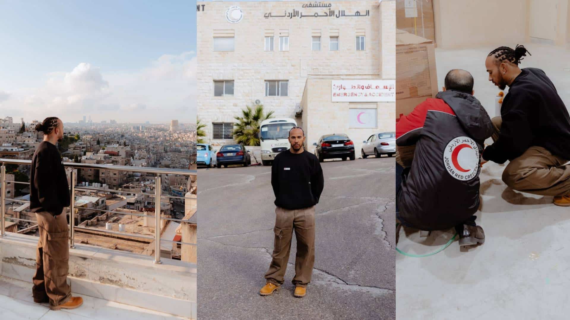 وشارك هاميلتون في فعاليات رمزية تضامنية، منها زيارة مراكز إيواء للاجئين الفلسطينيين في الأردن، حيث تفاعل مع أطفال وأسر متضررة، معبراً عن تضامنه الكامل معهم وداعياً المجتمع الدولي إلى زيادة الدعم الإنساني العاجل.
