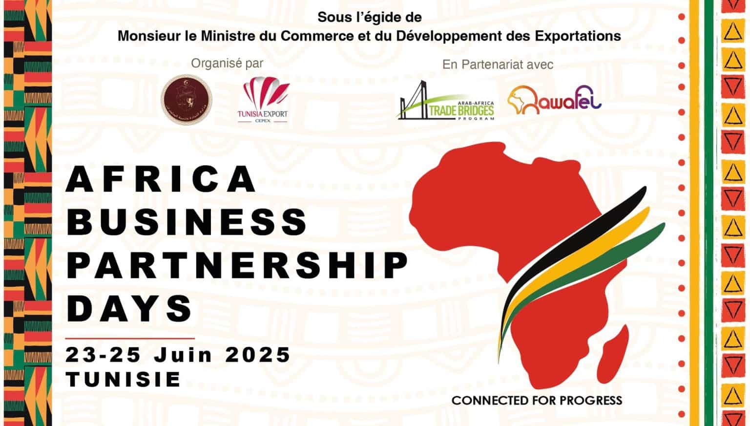 Le Centre de Promotion des Exportations (CEPEX), en collaboration avec le Ministère des Affaires Etrangères, de l’Immigration et des Tunisiens à l’Etranger, organise la première édition des « Africa Business Partnership Days (ABPD 2025) »du 23 au 25 juin 2025 à Tunis.