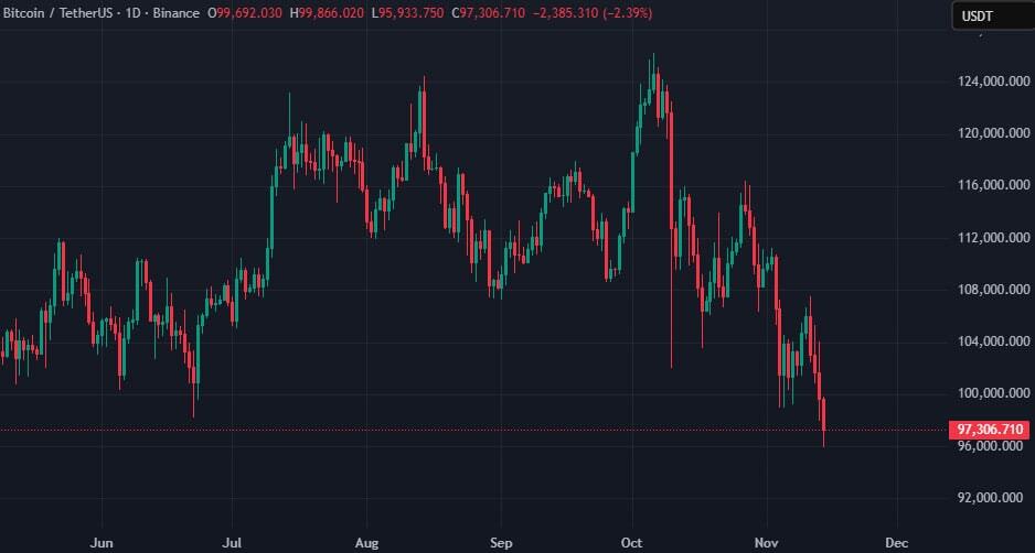 Le bitcoin, la principale crypto-monnaie, a connu une chute brutale dans la nuit du 14 novembre 2025, son cours passant sous la barre des 96 000 dollars pour la première fois depuis le mois de mai dernier. Le cours s’est ensuite légèrement redressé pour atteindre 97 000 dollars, mais a suscité une vague d’inquiétude chez les investisseurs, reflétant la vulnérabilité du marché à des fluctuations rapides.